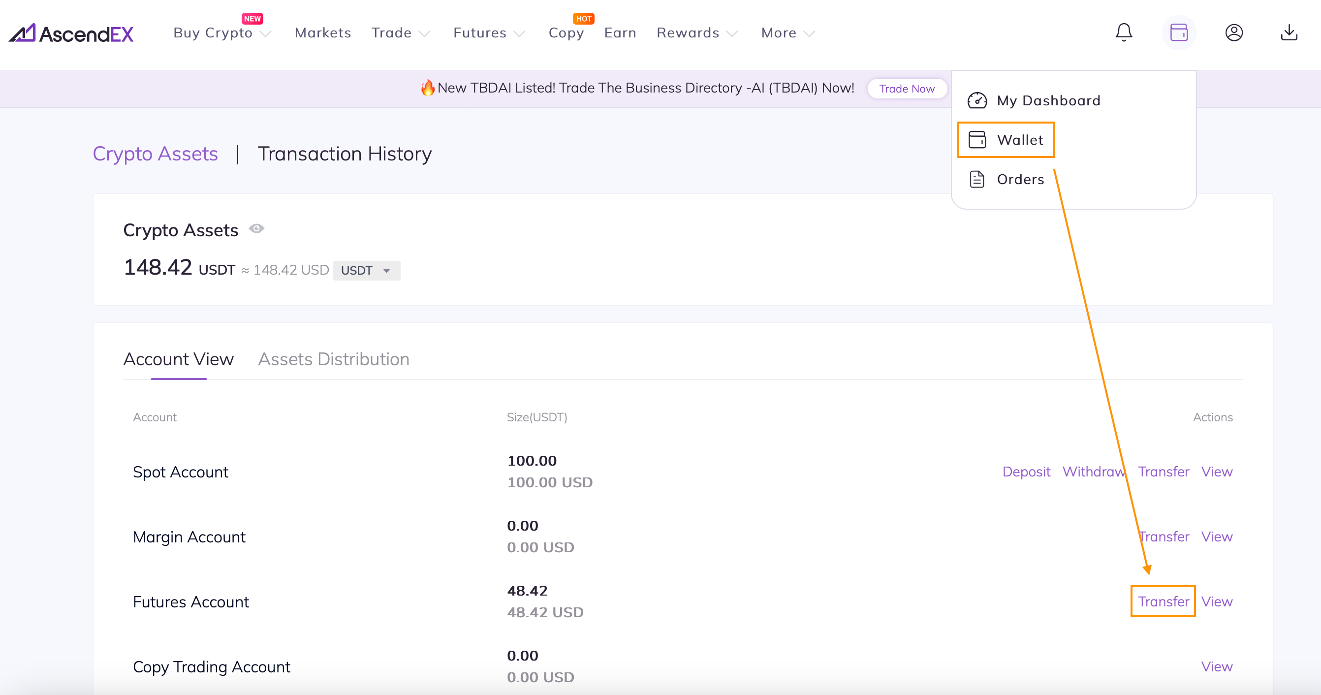 (2) Transfer Path on the Trading Page (Only supported on PC)