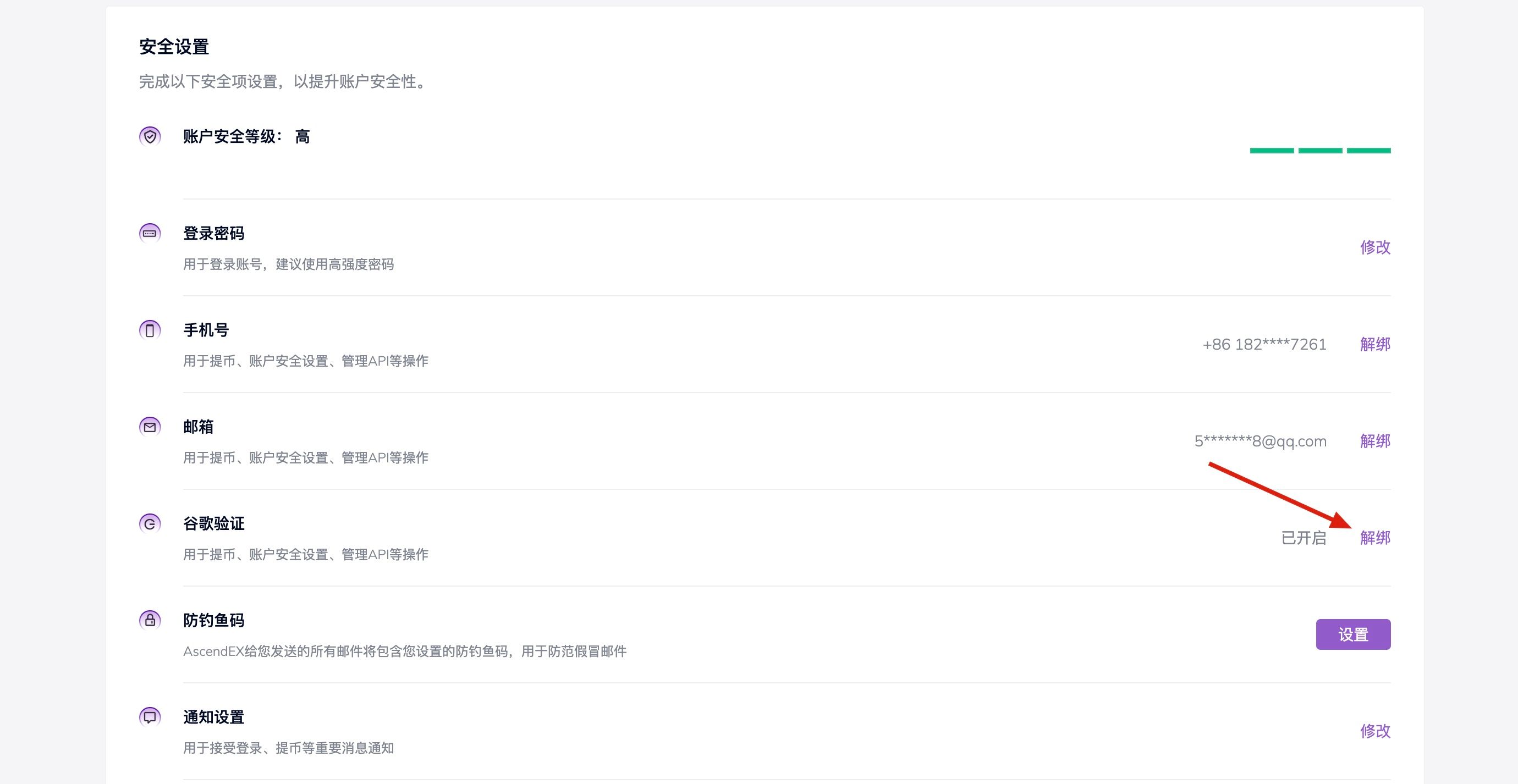 注意:此后在AscendEX进行登录或其他安全操作时,均需要填写谷歌验证器APP中对应的6位数字。验证码30秒变化一次,请您注意输入最新验证码。