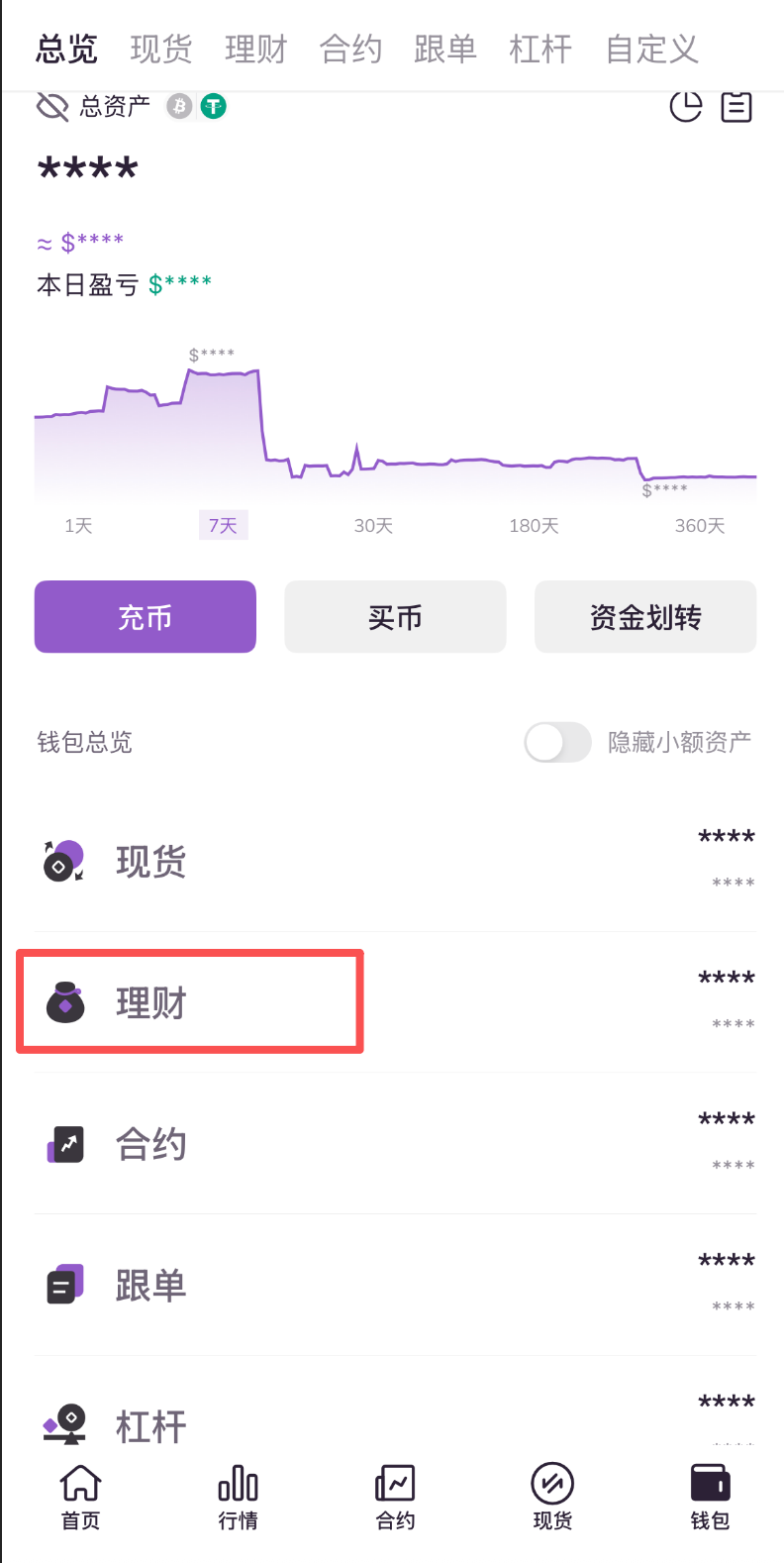 2.进入个人钱包页面,点击理财账户。