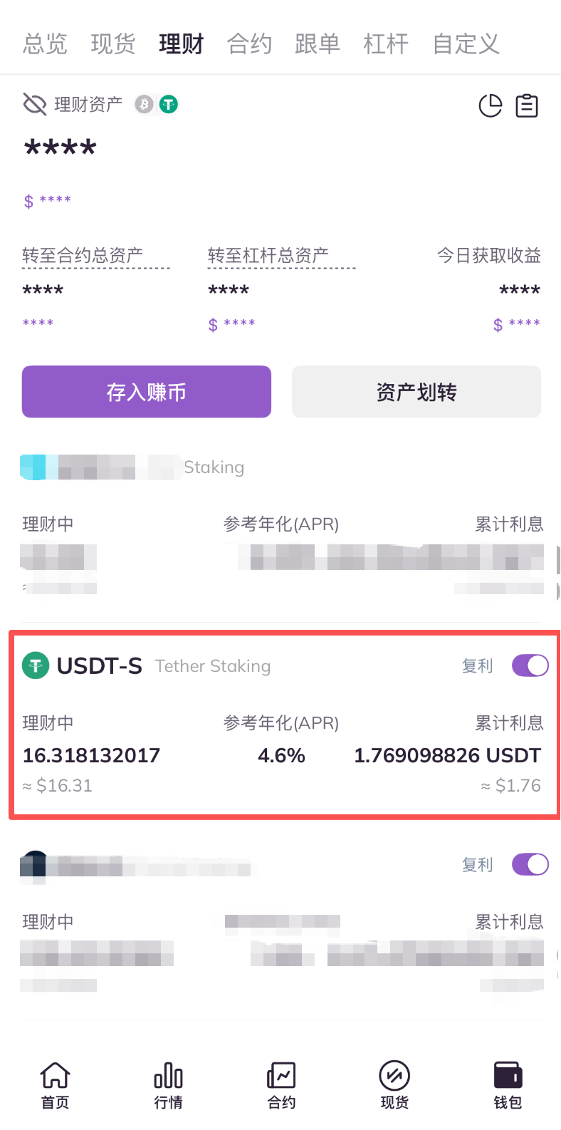 3.进入理财账户页面,查看理财项目列表,点击目标Staking资产。