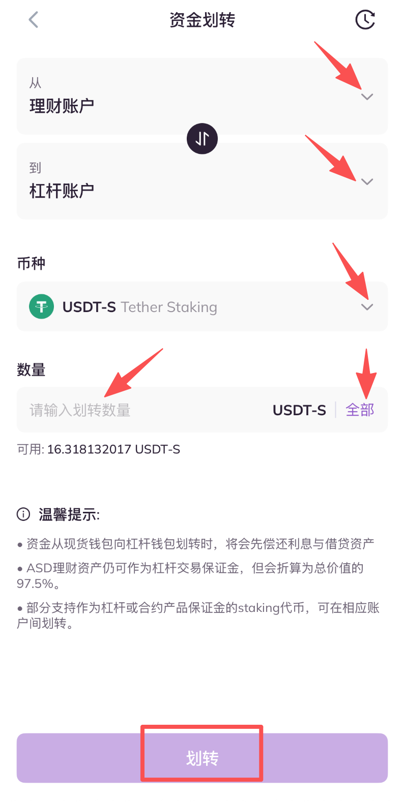 二、从杠杆交易页面划转